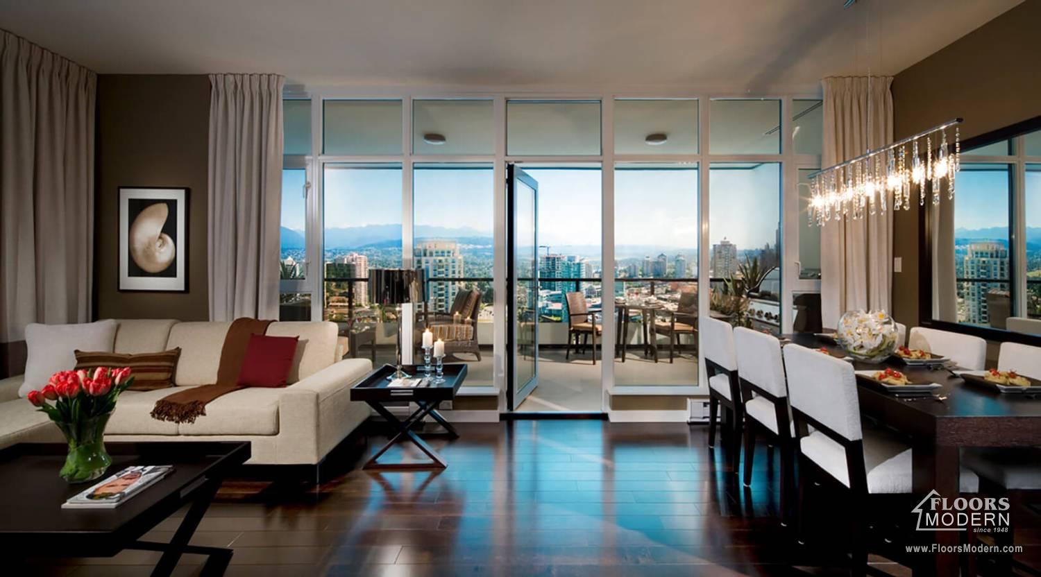 All solid wood floors will react to the presence of moisture. In the winter heating months, moisture leaves the wood causing the floor to contract which leaves unsightly gaps between each plank. In the summer months when the humidity is higher the wood will expand and the gaps will disappear. If there is too much moisture it may cause the wood planks to cup, or buckle. This is why it is important when installing a solid strip floor to leave the proper expansion area around the perimeter and to acclimate the wood prior to installation.